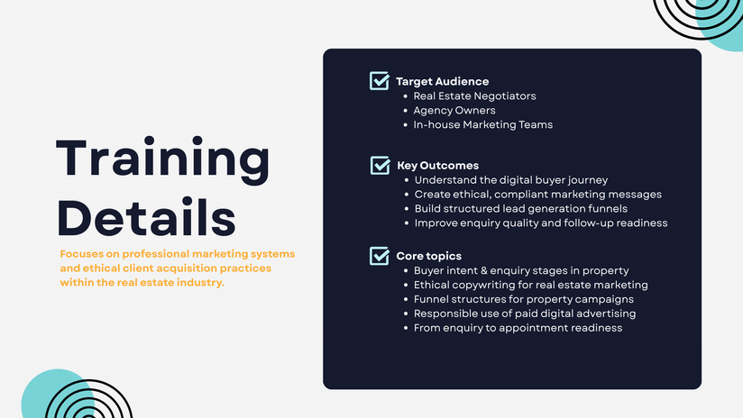 We help real estate professionals convert more digital enquiries into real appointments and committed buyers - ethically, professionally, and consistently.